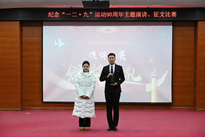 台上的选手们站姿挺拔、声音洪亮、饱含激情,或娓娓道来“一二·九”运动中青年学生的英勇无畏,或慷慨激昂地呼吁铭记历史、挺膺担当,用富有感染力的话语触动每一位听众的心灵,让同学们深切感受到那段历史的厚重以及其中蕴含的伟大爱国主义情怀。