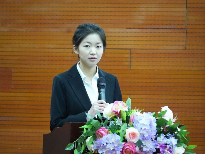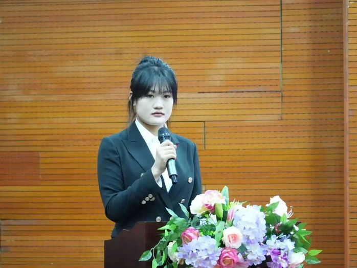 随后,土木2505班苏继爽同学作为优秀代表发言。2025年寒假期间,她自1月26日起,向吉林省白城市临江街道报到,随后走进本地幼儿园冬令营开展志愿服务,这段扎根乡土、贴近基层的实践经历短暂却格外充实,让她走出校园书本,真切在躬身实践中收获成长、体悟责任、收获新知。