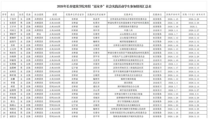 2025年寒假期间,土木工程学院共有30余人积极参与“返家乡”社会实践活动。同学们主动投身基层服务、家乡建设与志愿服务,用实际行动践行雷锋精神,展现了土木学子的责任与担当。